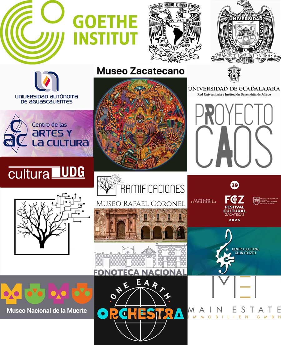 21. – 27. April 2025, Mexiko-Stadt 3 Konzerte (UNAM, Goethe-Institut, Fonoteca Nacional), Projekte an der Universidad Nacional Autónoma de México und der Escuela de Música y Danza del Centro Cultural Ollin Yoliztli Partner: Prof. Greta Licona, Universidad Nacional Autónoma der México, Musikabteilung / Escuela de Música y Danza del Centro Cultural Ollin Yoliztli / Goethe-Institut Mexiko-Stadt / Tania Rubio, Dir. Laboratorio de Ecología Acústica en México / Mirna Castro González, Tito Rivas, Fonoteca Nacional, Mexiko-Stadt Zeitplan: 21.04.25: Konzert an der UNAM / 24.04.25: Konzert im Goethe-Institut Mexiko: 25.04.25: Konzert in der Fonoteca Nacional / 22.,23..04.25: Workshops, Lectures an der UNAM, 24.04.25: Austausch zu traditioneller Musik in Lateinamerika und Europa an der Escuela de Música y Danza del Centro Cultural Ollin Yoliztli Konzertorte: Universidad Autónoma de México / Goehte-Institut Mexiko / Fonoteca Nacional: https://mexicocity.cdmx.gob.mx/venues/fonoteca-nacional/?lang=es